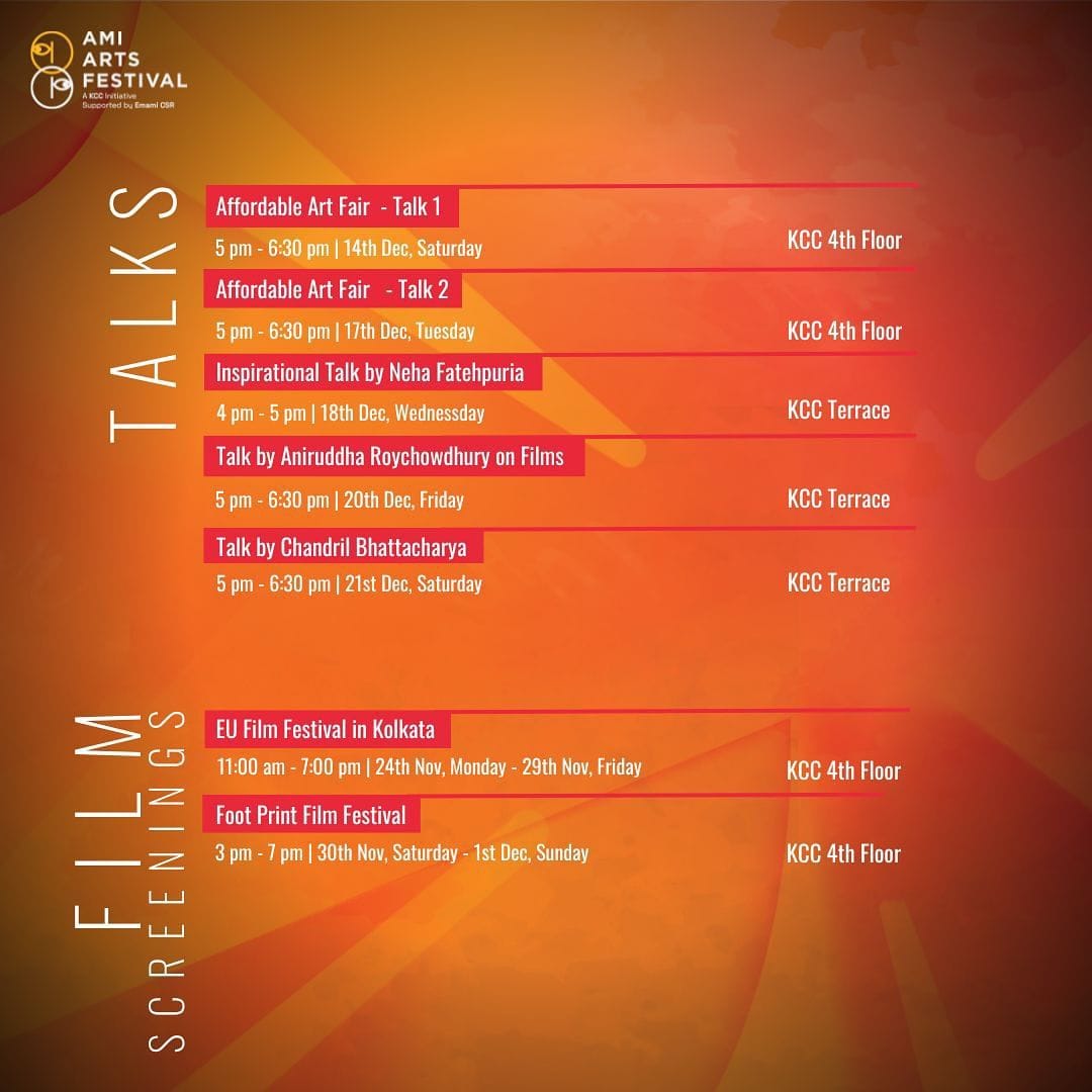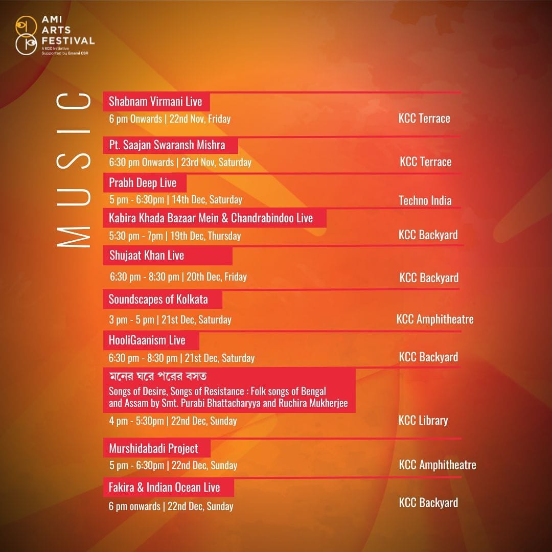 - Opening Celebration: My Kolkata in Kolkata, a photography exhibition and competition, launches the festival, accompanied by performances from Parambrata Chatterjee and Piya Chakraborty.