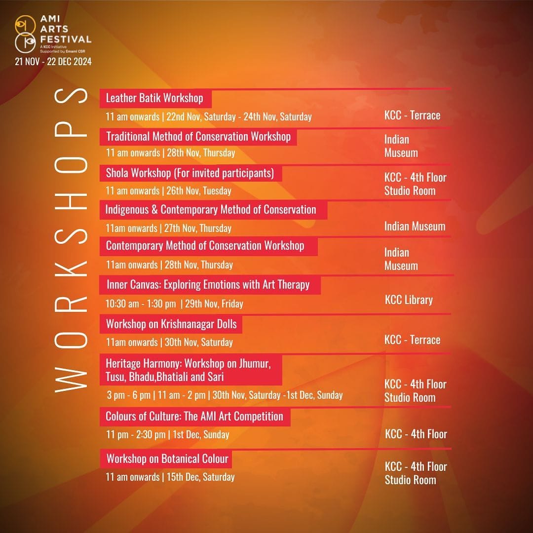 The Kolkata Centre for Creativity (KCC) is set to host the 5th edition of the AMI Arts Festival, a month-long cultural extravaganza that will transform Kolkata into a hub of creativity from November 21 to December 22, 2024. Spanning iconic venues like the Indian Museum, Victoria Memorial Hall, and GD Birla Sabhaghar, the festival brings together over 200 artists across disciplines, presenting 10 exhibitions, 15 workshops, and a variety of performances in music, theatre, and dance.