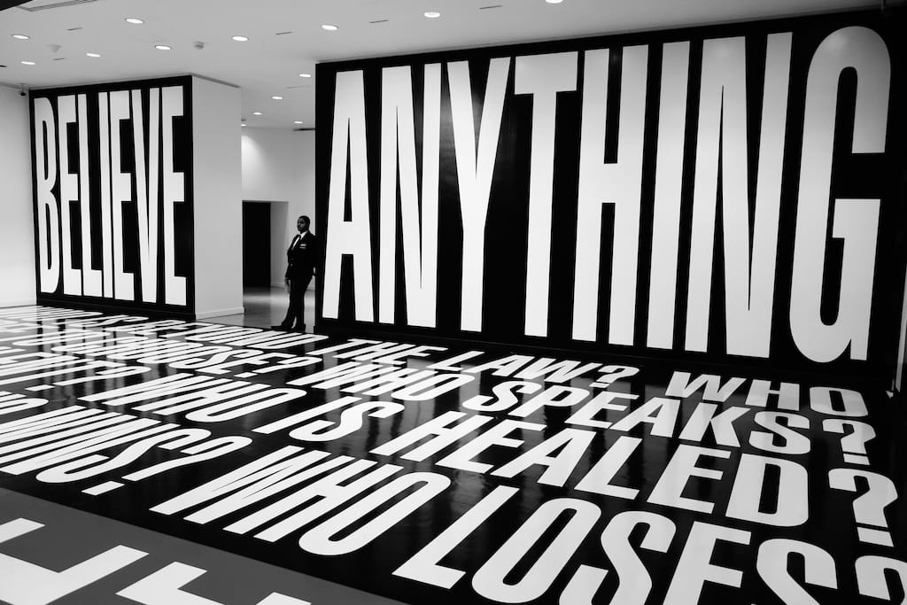 Kruger’s bold use of text and image challenges systems of power and representation. Her collage based works, often featuring stark slogans, remain highly influential in both art and design.