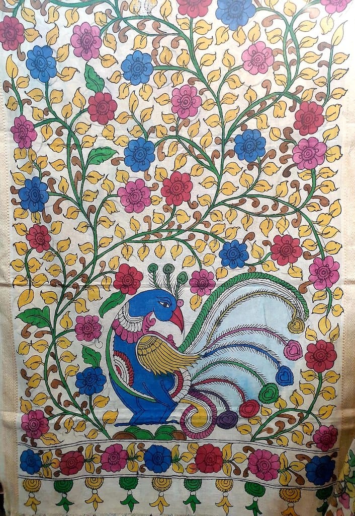 Cultural Significance: Kalamkari has been an important part of India’s textile heritage, with the painted fabrics used for wall hangings, sarees, and other decorative items. The art form is celebrated for its detailed pen work and the use of natural dyes.