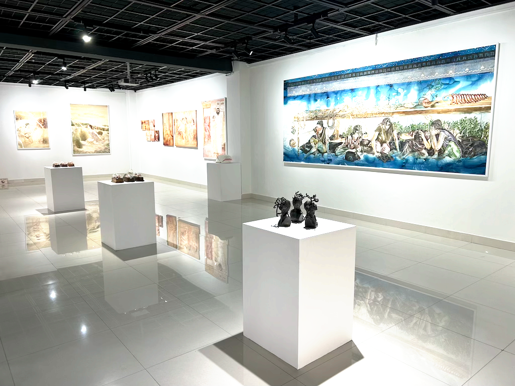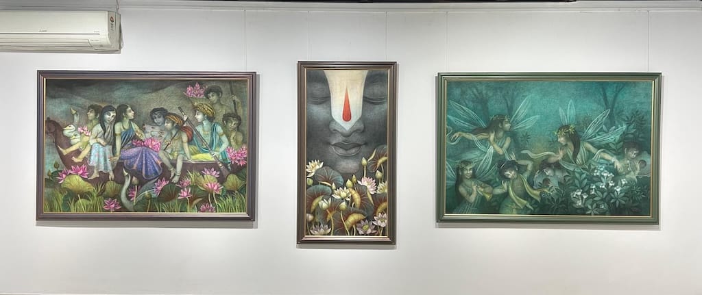 At Kalakriti Art Gallery, Mirror of Vision and A Room for Refuge bring together two artists—Bratin Khan and Anupama Alias Anil—whose works explore the interior landscapes of human experience through differing yet complementary lenses. Mirror of Vision unites Bratin’s luminous tempera canvases, while A Room for Refuge reflects Anupama’s layered exploration of womanhood, vulnerability, and the shifting contours of selfhood.