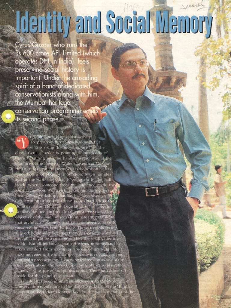 Beyond the corporate world, Guzder has been a stalwart advocate for heritage conservation, currently President of the Bombay Environmental Action Group (BEAG) and establishing key chapters of the Indian National Trust for Art and Cultural Heritage (INTACH).