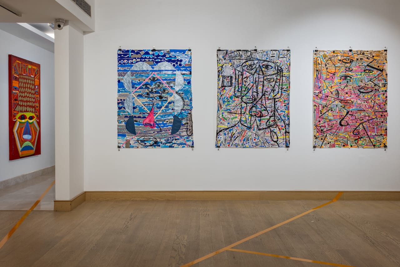 Nature Morte presents 'The Dichotomous Salon', a compelling new exhibition by Nidhi Agarwal. Featuring large-scale collage drawings, the show investigates human identity and social dichotomies through layered portraits and found materials. On view until 22 March 2025.