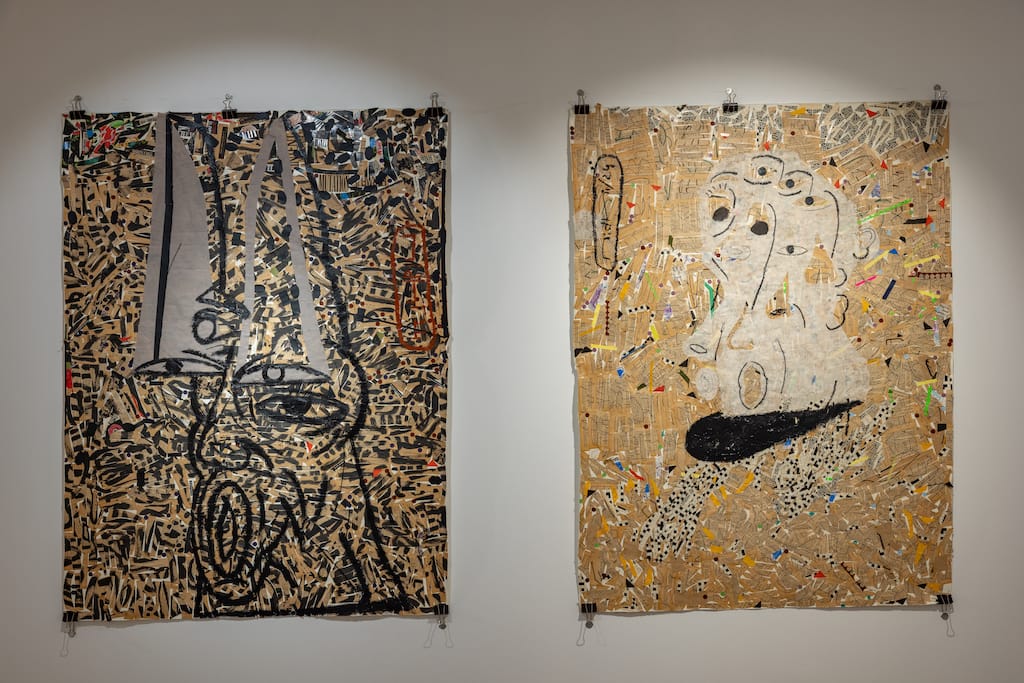 New Delhi’s Nature Morte gallery presents The Dichotomous Salon, a striking solo exhibition by artist Nidhi Agarwal, showcasing a new body of large-scale works on paper. Running until 22 March 2025, the show offers a compelling exploration of human complexity through a fusion of drawing and collage, where the interplay of found materials and layered compositions transforms discarded objects into poignant reflections on identity, memory, and coexistence.