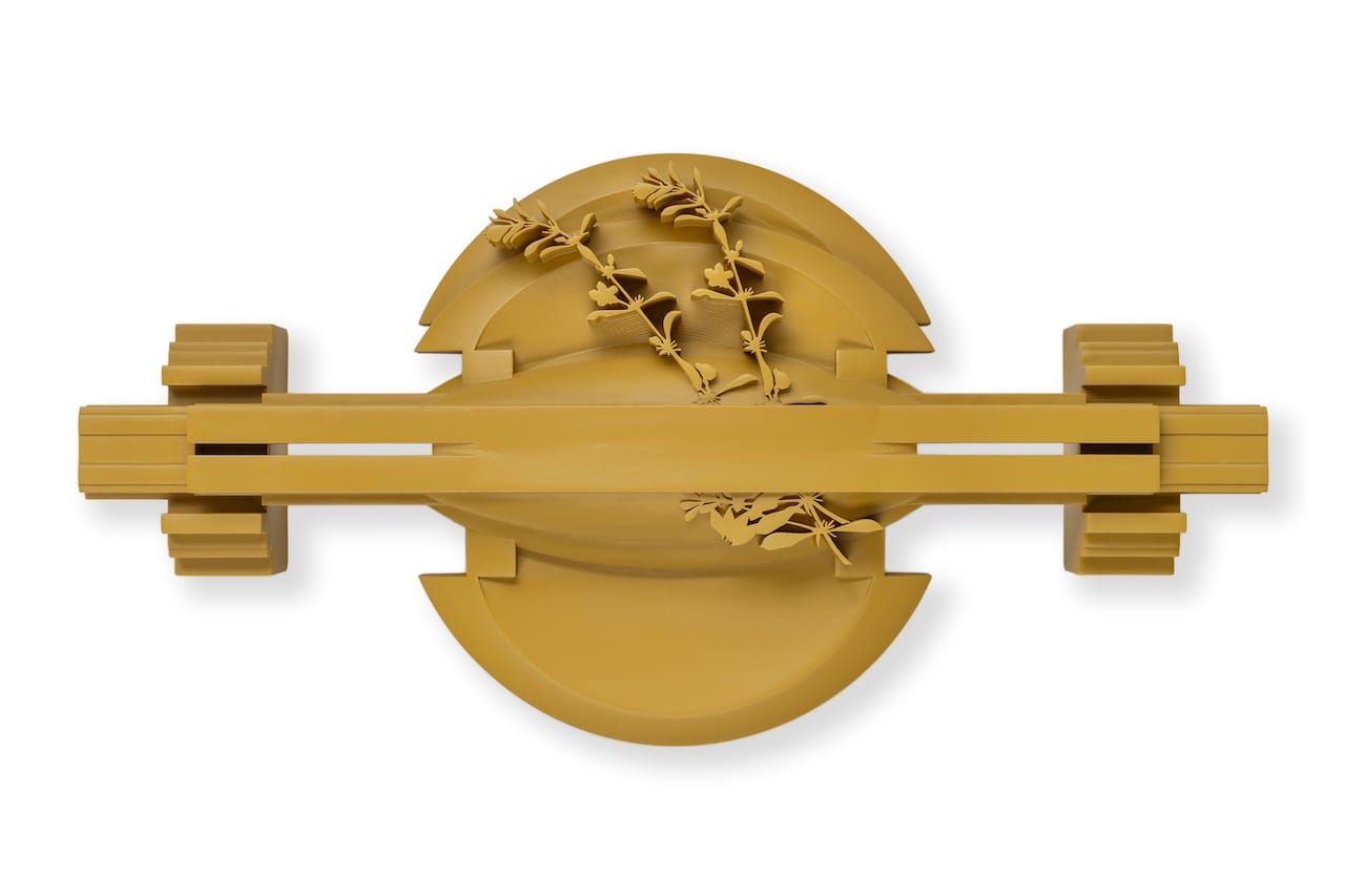 ASB: I wanted the botanical elements in the works, made through precise machine production, to allude to the unnaturalness of gardens as controlled and subjugated nature. However, in these works, the unnatural, in the form of materials and digital design methods, is not used to order and control but rather becomes an element that enables the works’ development. I was thinking about how plants grow in a disordered way when activated, through the reiteration of botanical units such as leaves, roots, or branches. My making process is similarly modular—I never have a plan for a work before I start digitally drawing; instead, the works evolve or ‘grow’ through the repetition, manipulation, and subtraction of drawn forms.