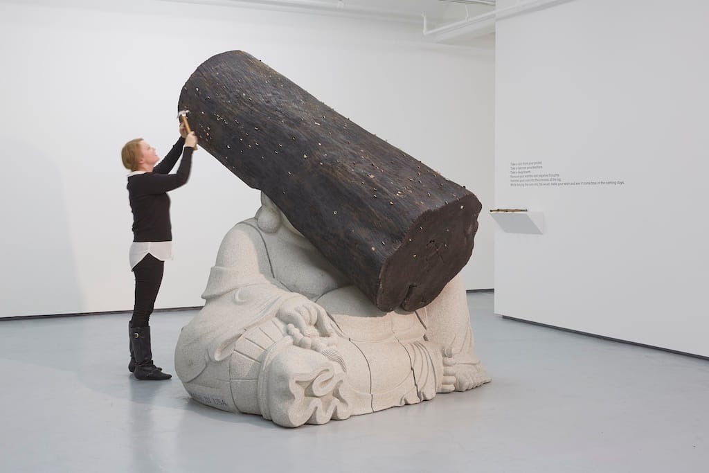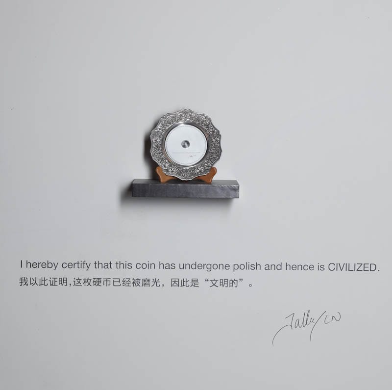 Another piece, Apocalypse, is a coin-polishing machine that gradually erases the coin’s denomination as it polishes. Over time, the coin loses its monetary value, symbolizing the ephemeral nature of wealth.