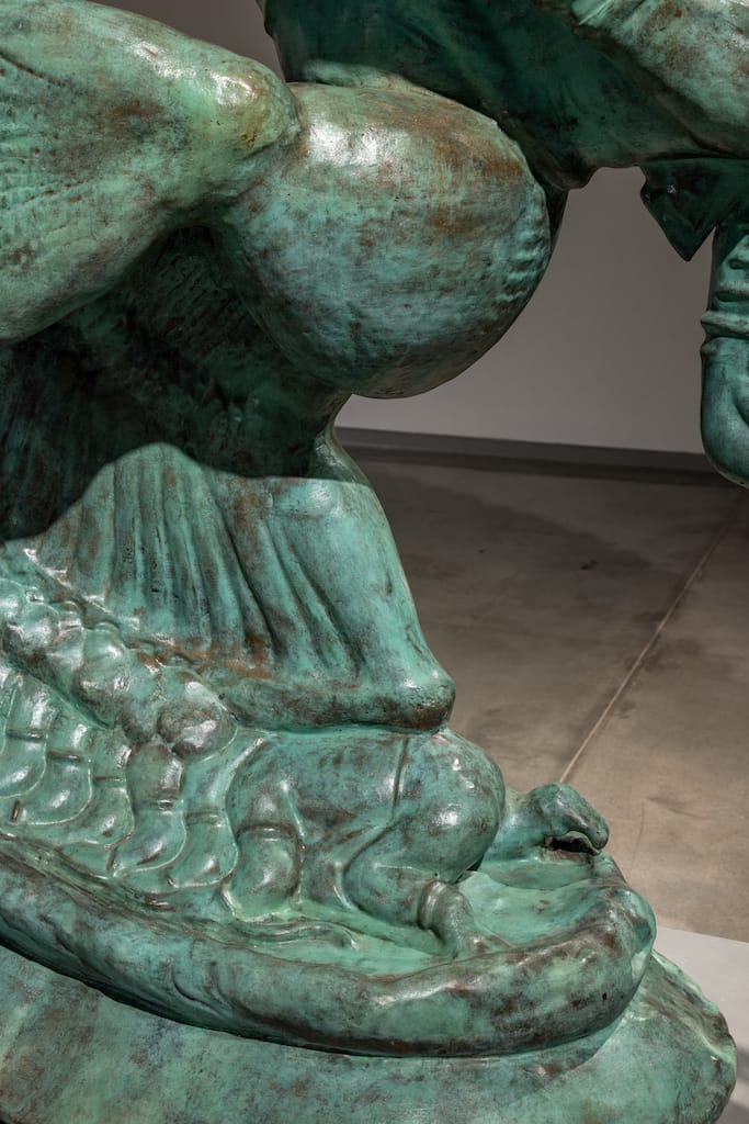 LNT: Take my recent work Glitch Tandav, for example. It features a green patina on bronze—what is commonly referred to as "bronze disease." This condition results from a chemical reaction between bronze and chlorides, leading to pitting and corrosion. Originally believed to be caused by bacteria, bronze disease is contagious in that it can spread to other cuprous objects if they come into contact.