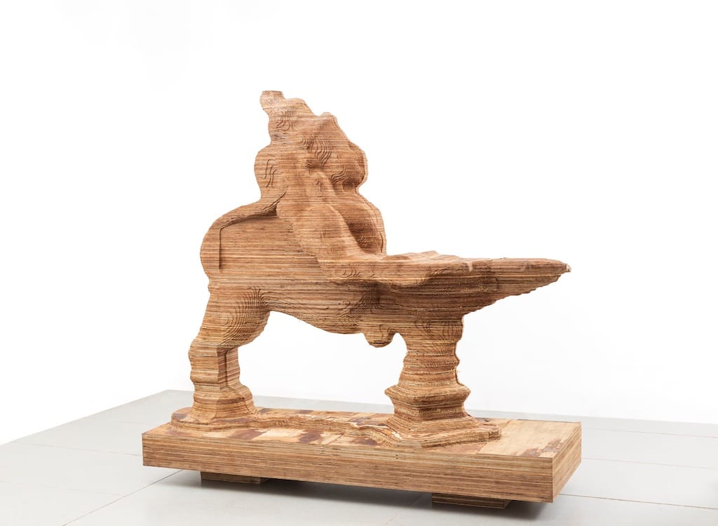 For example, the concept of Purush Mriga—a mythological creature, half-man and half-animal, known to run as fast as human thought—resonates with contemporary ideas of Artificial Intelligence. To bring this idea to life, I used plywood, a material composed of layers from multiple trees, each carrying the essence or ‘information’ of its source. I named this work Data Mining.