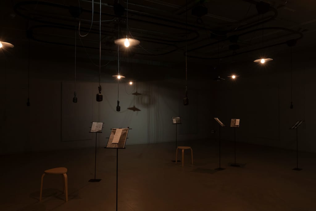 Among the key works on display is StillTheyKnowNotWhatIDream, an installation that reconfigures a train-station flap board to display fragmented sentences. Instead of announcing train schedules, the board presents fleeting, incomplete phrases, suggesting the instability of information and the ways in which meaning is shaped by erasure and omission.