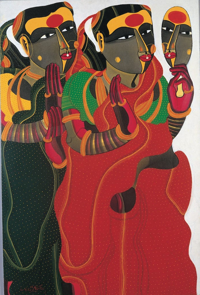 TV: Thota Vaikuntam: Redefining the Cultural Gaze provides a more comprehensive view of my artistic evolution, documenting five decades of work. It captures not only the growth of my style and technique but also my deepening connection with the subjects I portray. Unlike The Man and His Women, which focused primarily on the depiction of women in my work, this publication covers a broader spectrum of my artistic journey, reflecting the full range of themes and ideas I have explored over the years.