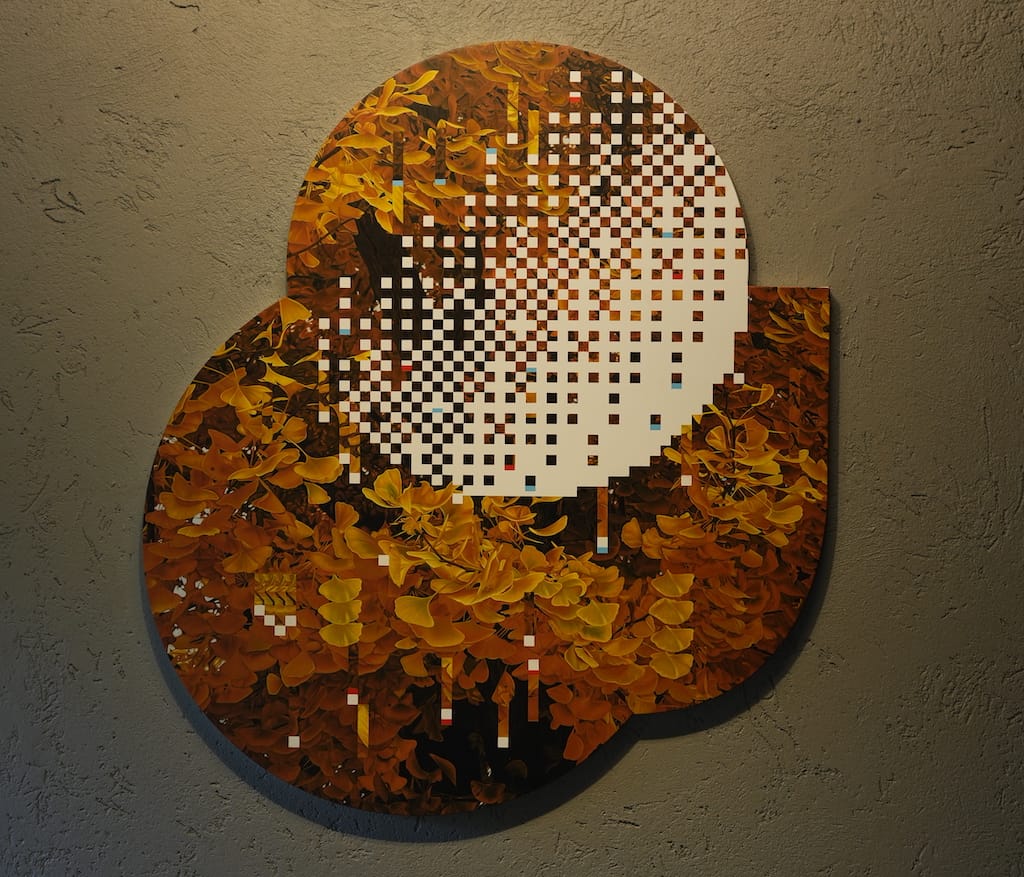The digital realm, with its speed, networks, and glitches, inspired much of this work. We saw the pandemic itself as a glitch—an error that forced us all to reset and rethink our work and lives. Translating this digital-physical duality onto unconventional canvas shapes was challenging but essential in reflecting the tension between control and fluidity.